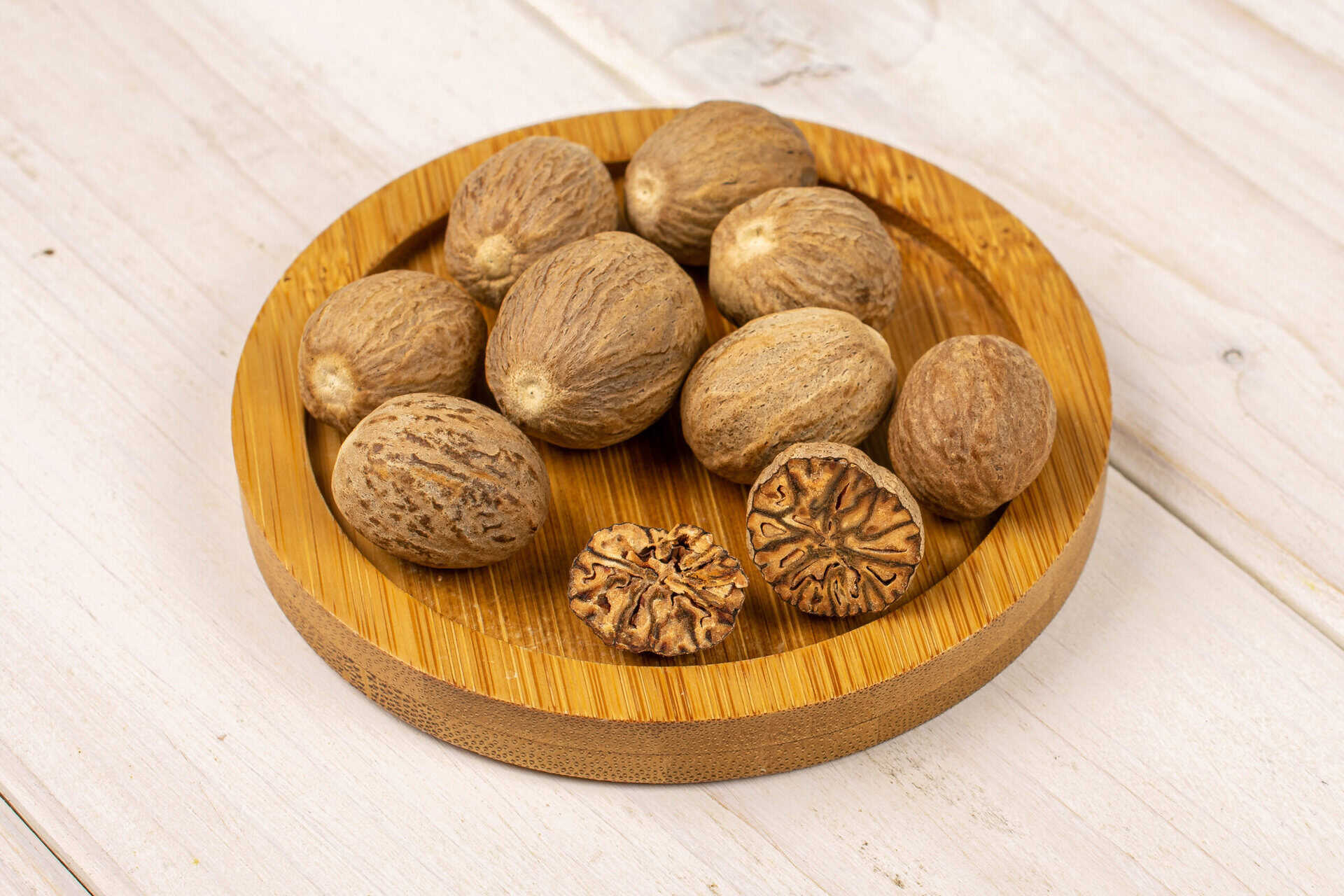 - Appearance: Whole nutmeg seeds with smaller to medium size with shriveled surface.